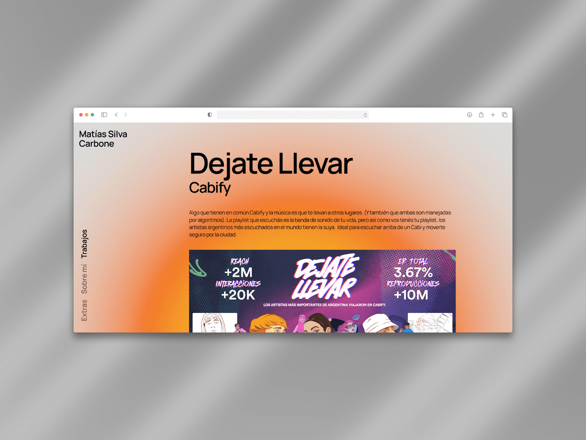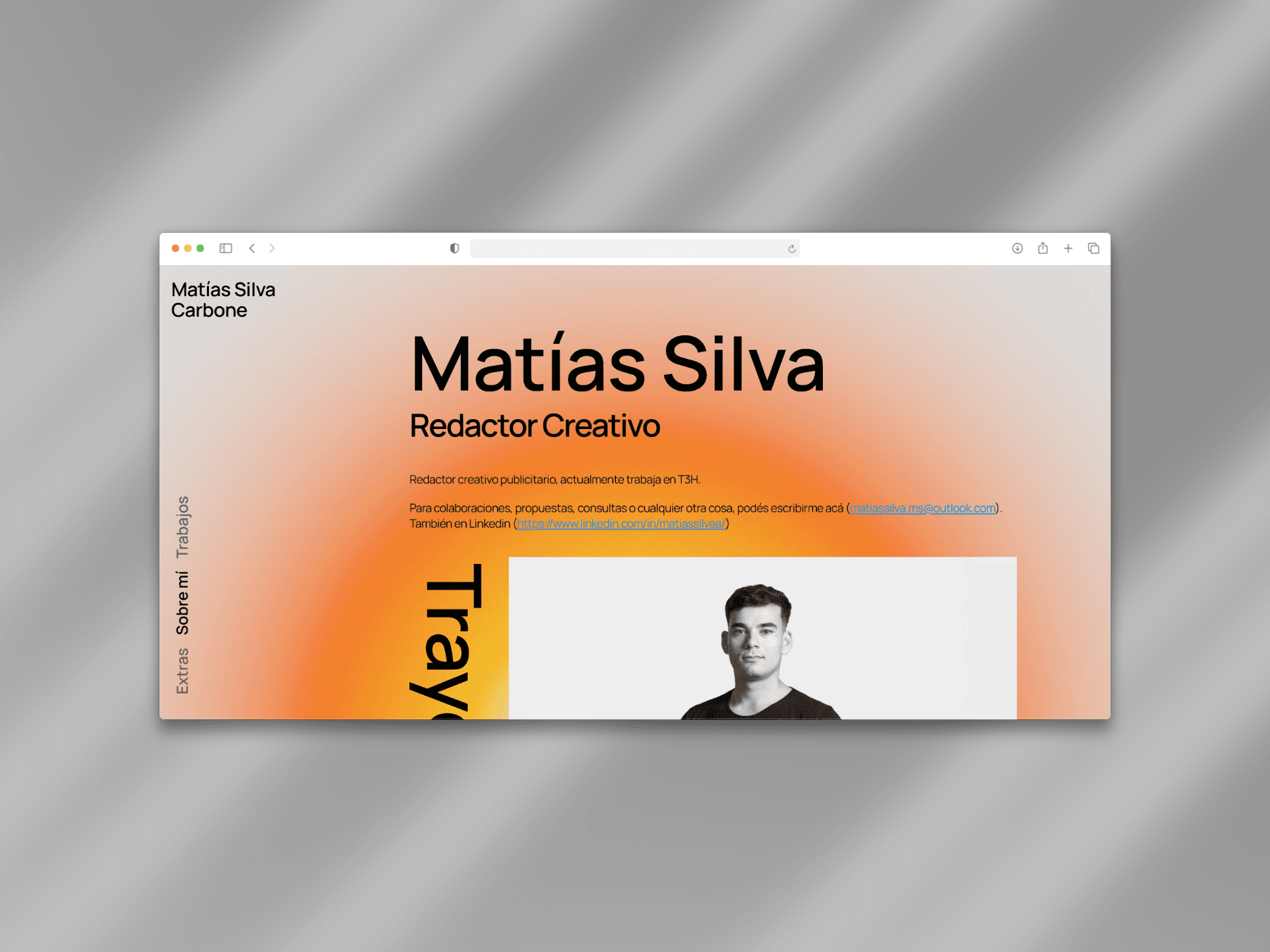 For Matías Silva Carbone, an Argentina-based creative copywriter, we designed and developed a clean, minimalist portfolio website focused on showcasing his work with clarity and impact. The goal was to create a simple yet visually engaging digital space that allows the content to take center stage while reinforcing his creative identity.