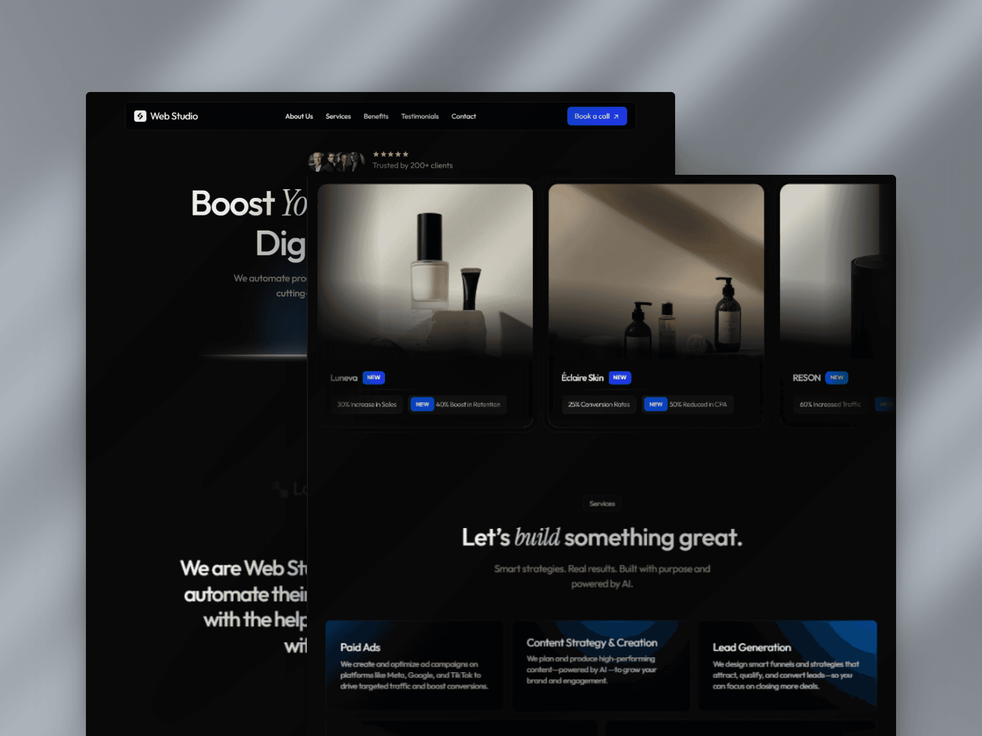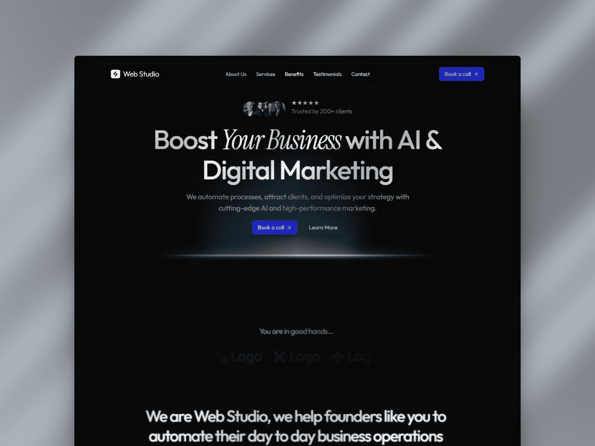 Web Studio is a modern, dark-themed landing page template designed and developed specifically for marketing agencies and digital studios. Created as a ready-to-use solution, the template is built to help agencies communicate value clearly, establish credibility, and drive client acquisition from the first interaction.